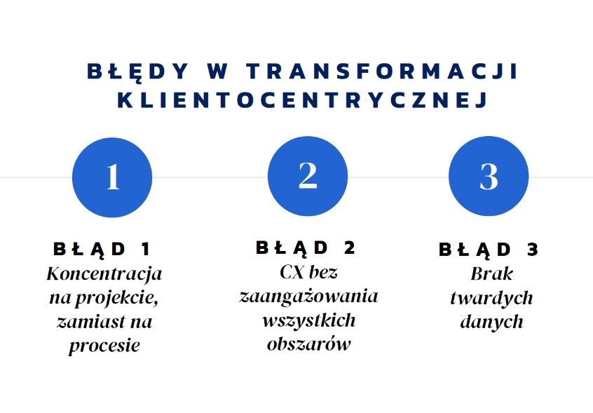 Jakie są Twoim zdaniem najczęstsze błędy firm, które „robią CX”, ale bez realnego wpływu? Załóżmy, że planujemy przeprowadzić transformację klientocentryczną w organizacji, która stawia pierwsze kroki w budowaniu pozytywnych doświadczeń klienckich.