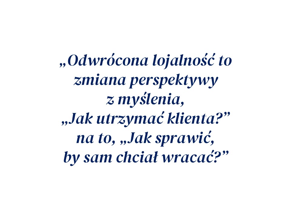 Odwrócona lojalność to zmiana perspektywy z myślenia, jak utrzymać klienta, na to, jak sprawić, by sam chciał wracać. Naszą rolą jako firm, jest być tak spójnym i atrakcyjnym, aby ten wybór był dla niego oczywisty. Klient zostaje z marką, która pasuje do jego preferencji, a nie z tą, która głośniej o sobie krzyczy. Wierzę w ten model, bo widzę, że działa w każdej branży w której pracowałem. Niestety, wiele firm przekonuje się o tym dopiero wtedy, gdy trzeba ciąć koszty, bo brakuje obrotów i jest już za późno na inwestycje. Wtedy koszt zmiany jest wielokrotnie większy niż koszt budowania lojalności od początku.