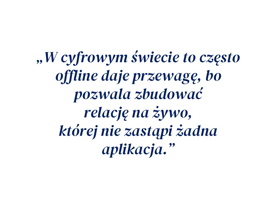 Sklep offline przestaje być tylko miejscem transakcji. Staje się przestrzenią, w której można doś-wiadczyć marki, dotknąć produktu, porozmawiać z doradcą, poczuć się częścią społeczności. W cyfrowym świecie to często offline daje przewagę, bo pozwala zbudować relację na żywo, której nie zastąpi żadna aplikacja.